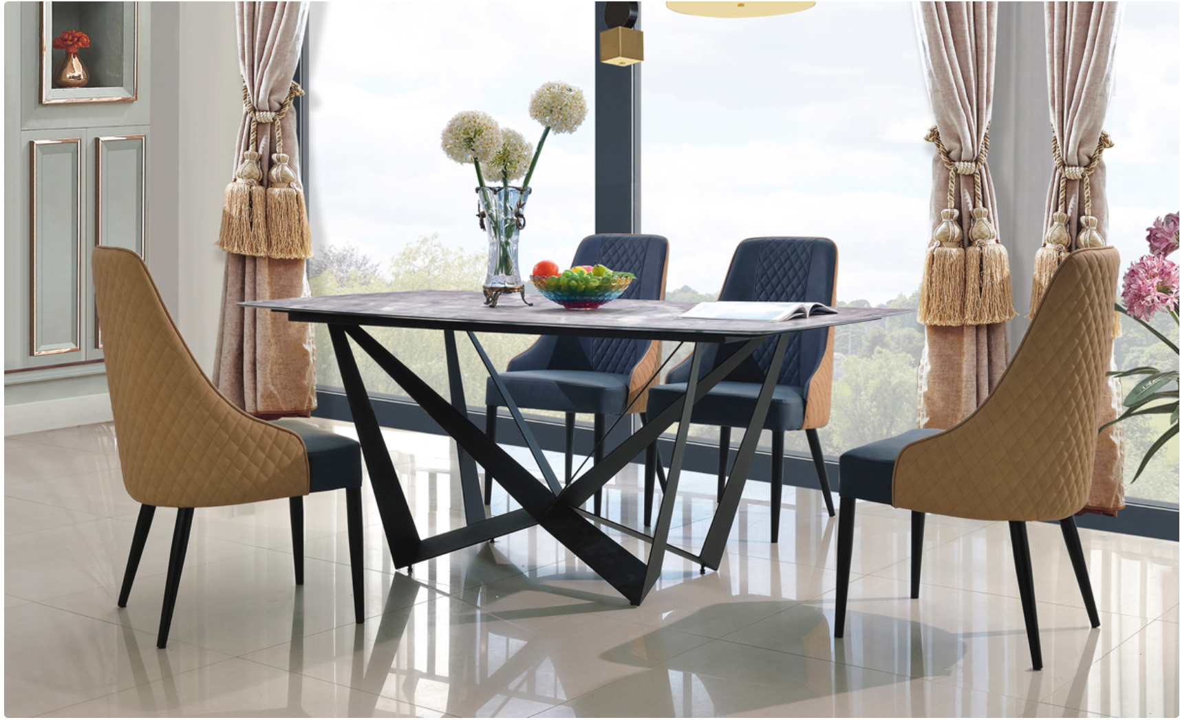 Marble Top Table with black metal frame, 1800W x 1000D x 750H, Adelaide chair -£228