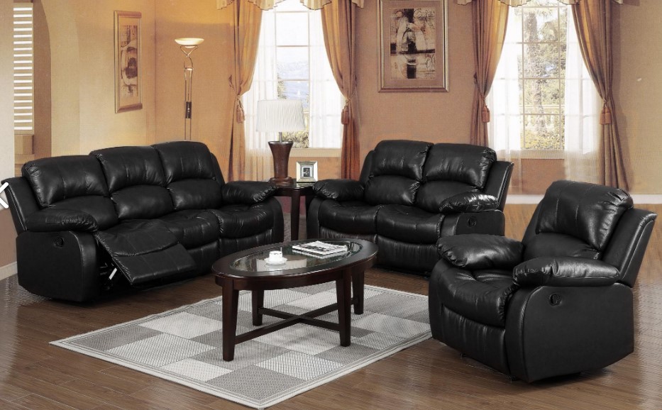 Carlino Sofa Recliner Suite 2 Seater, Full Bonded Leather - Black, Brown 1530W x 990D x 965H Two Seater (2 Recliners)