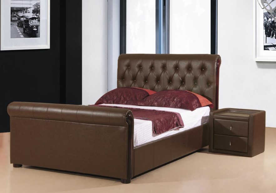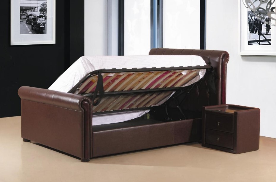 Caxton PU Storage Bed.Double, Kingsize.Black, Brown..Opens RHS only.With Board Base