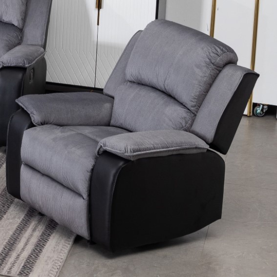 Earlsdon Recliner 1 Fabric & PU - Grey Fabric & Black PU 900W x 910D x 920H One Seater