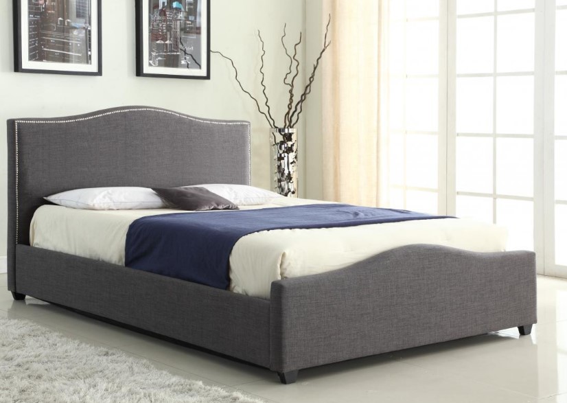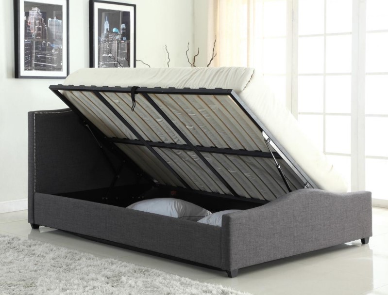 Elle Storage Bed.Linen.Double, Kingsize.Grey, Fabric Base