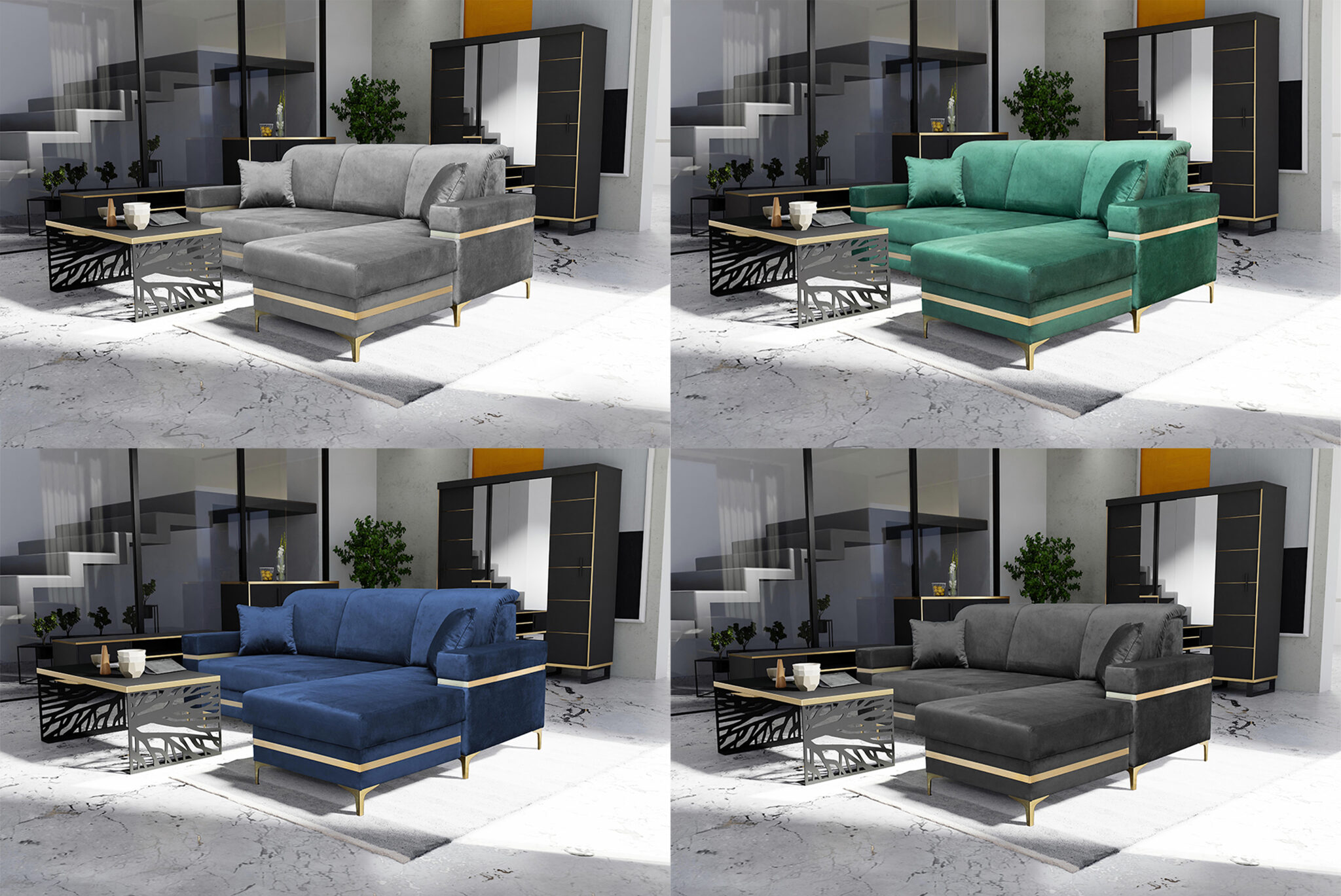 Corner Sofa bed with storage, available in green, grey, black, blue.