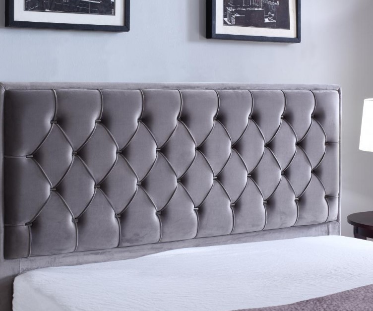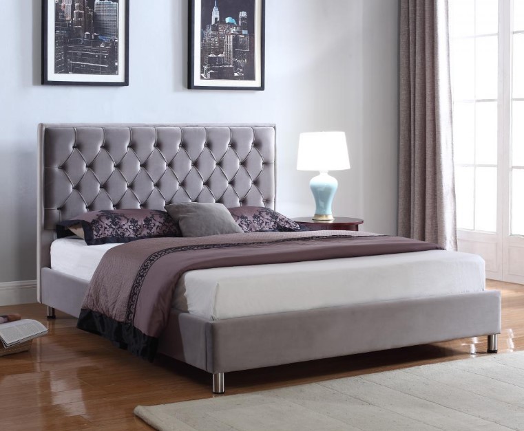 Velvet, Double, Light Grey Frame with Dark Grey Headboard