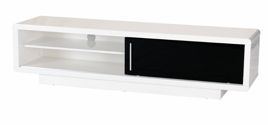 TV Unit High Gloss, 1800W x 450D x 450H, - Black, White Adjustable Shelf, Sliding Door,