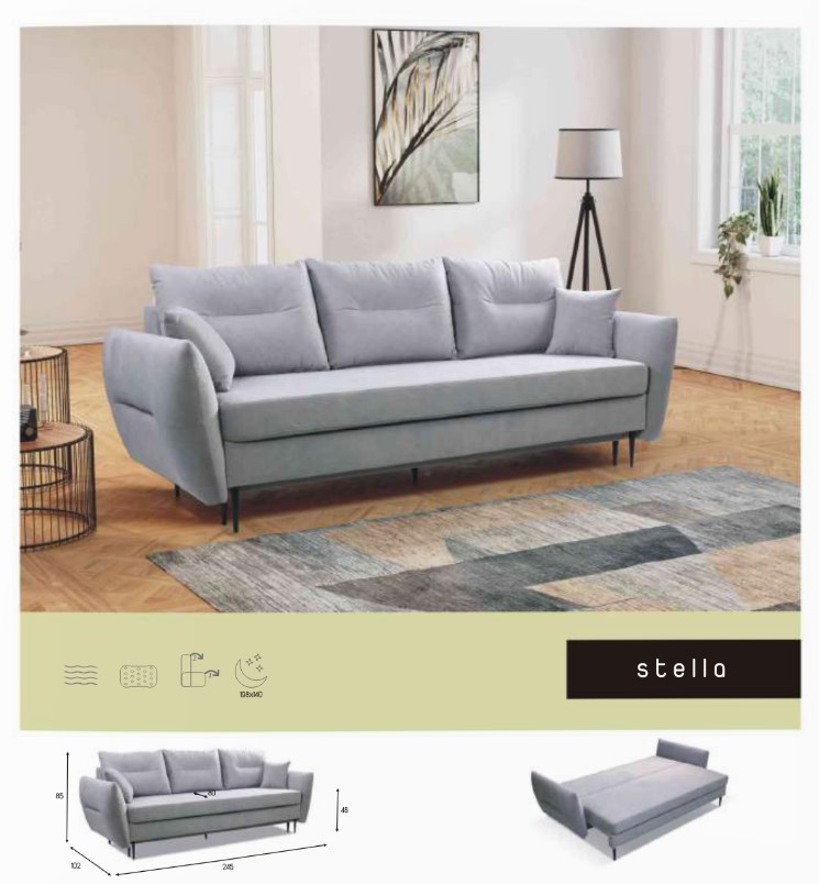 Sofa bed, L-245, D-102, H-85. Sleeping area 198x140cm,