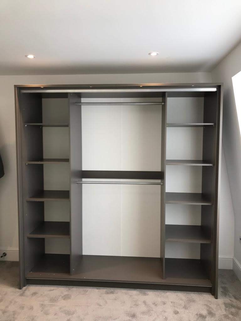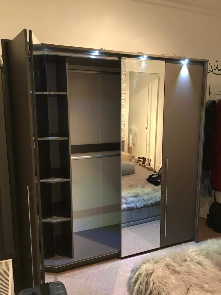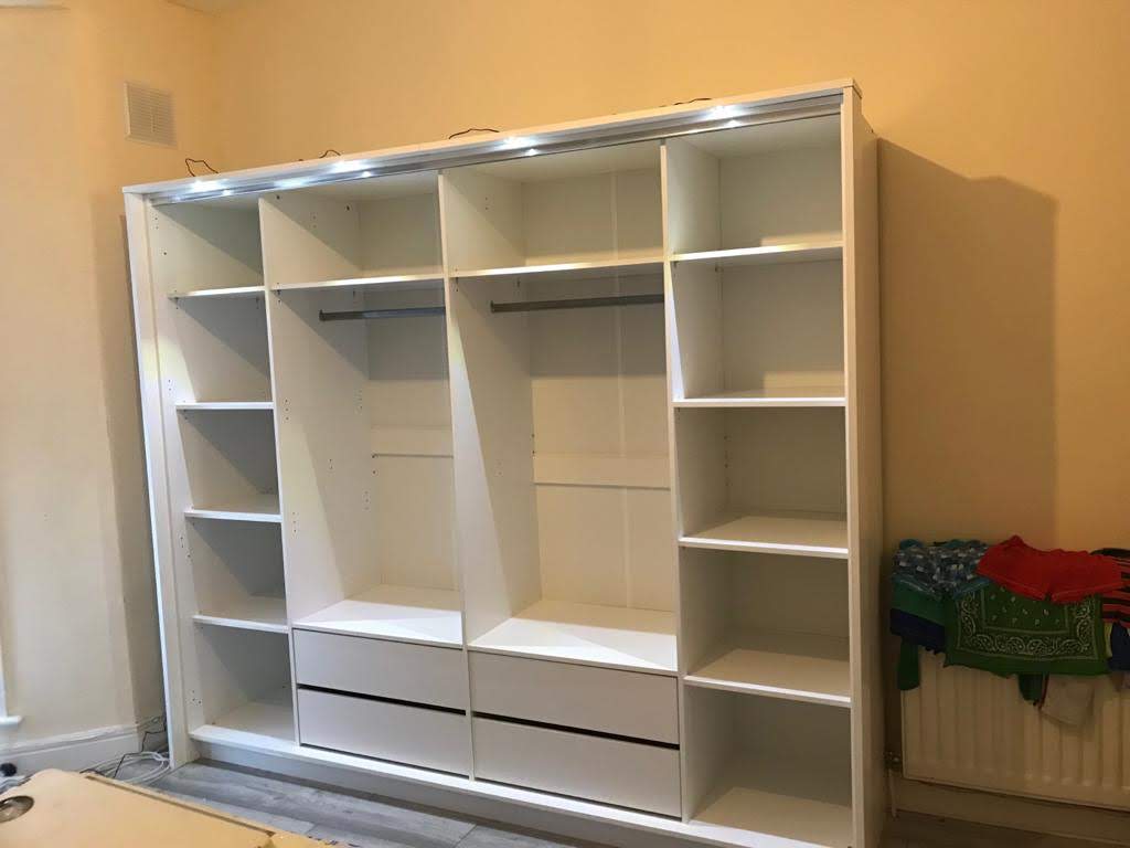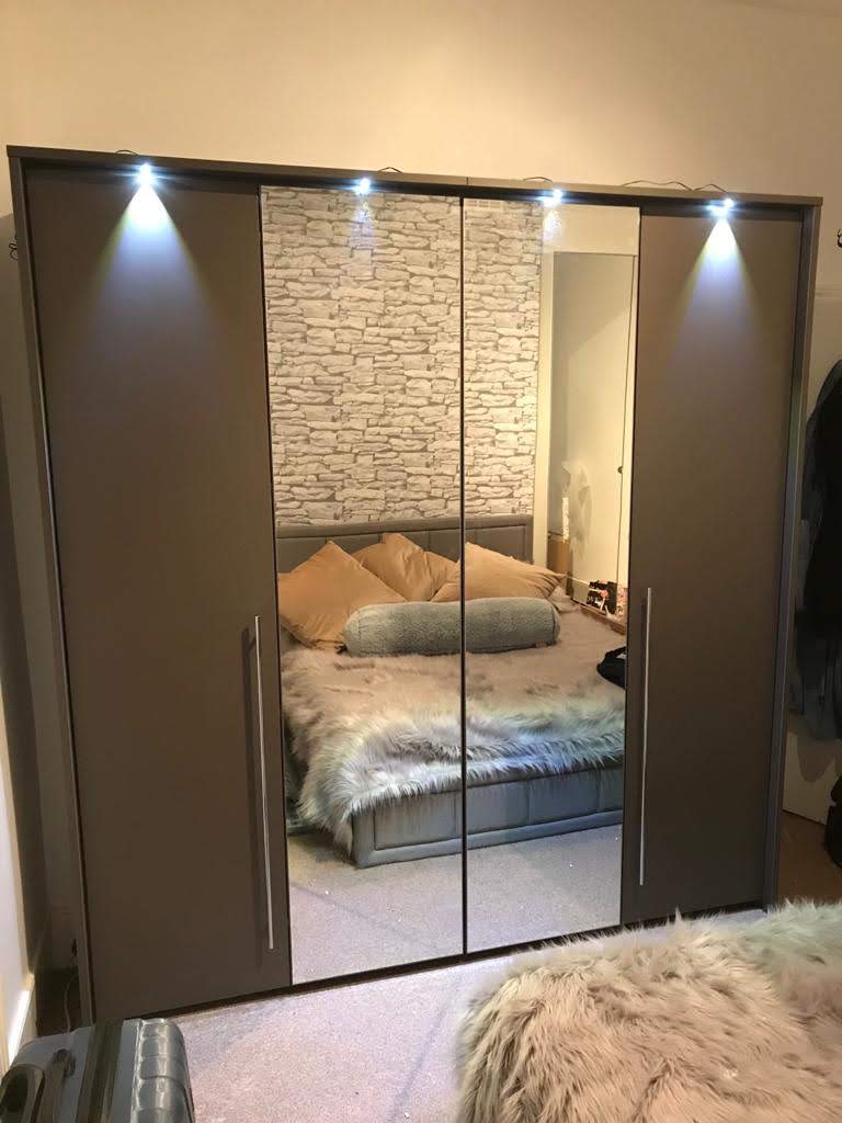 4 door sliding wardrobe, available in white or brown, W-210cm, H-215cm, D-60cm.