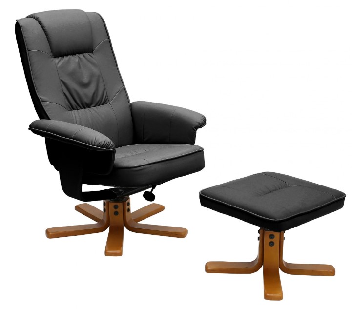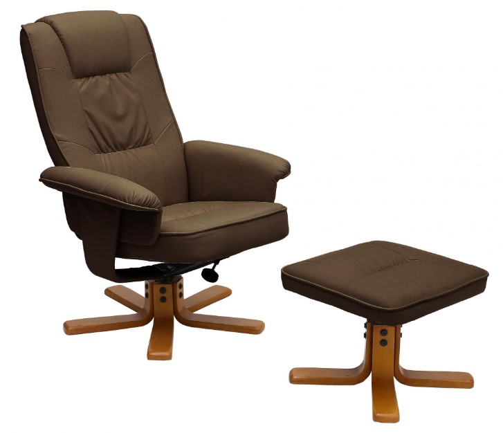 Althorpe Recliner PU with Wooden Legs, 720W x 1170D x 860H, Recliner with Stool, 705W x 700D x 950H, Upright Black, Brown, Cream.