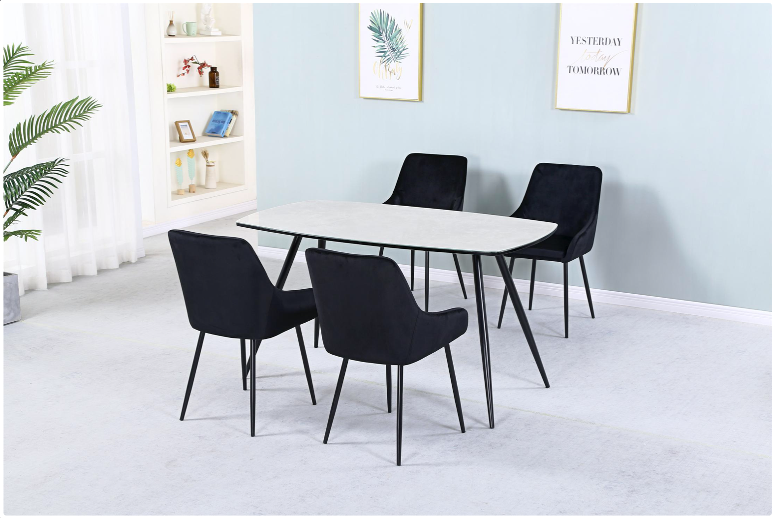 1400W x 800D x 760H Marble Effect Glass Top Table with Black Metal Legs, Chair £117.