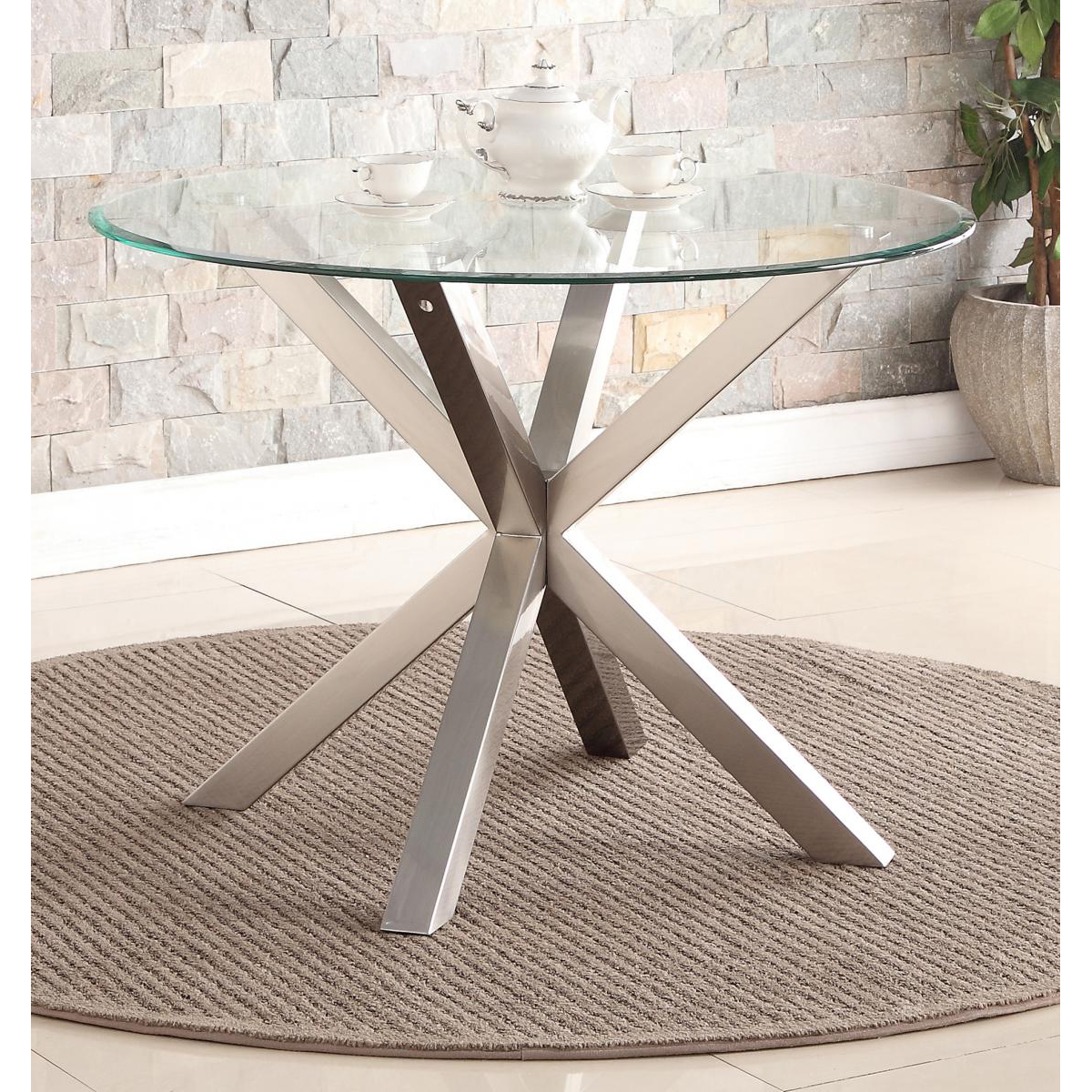 Coffee Table, 700W Round x 450H, Glass Top with Brushed Stainless Steel Legs,