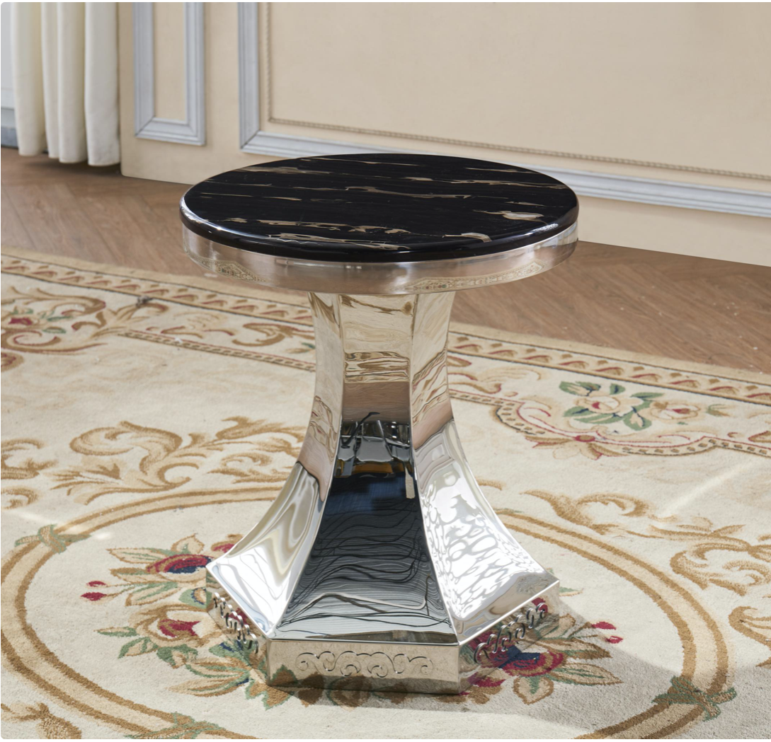 Natural Stone with Marble Effect and Lacquer Finish, Black and Stainless Steel, Vasto Lamp Table Round 500W Round x 550H