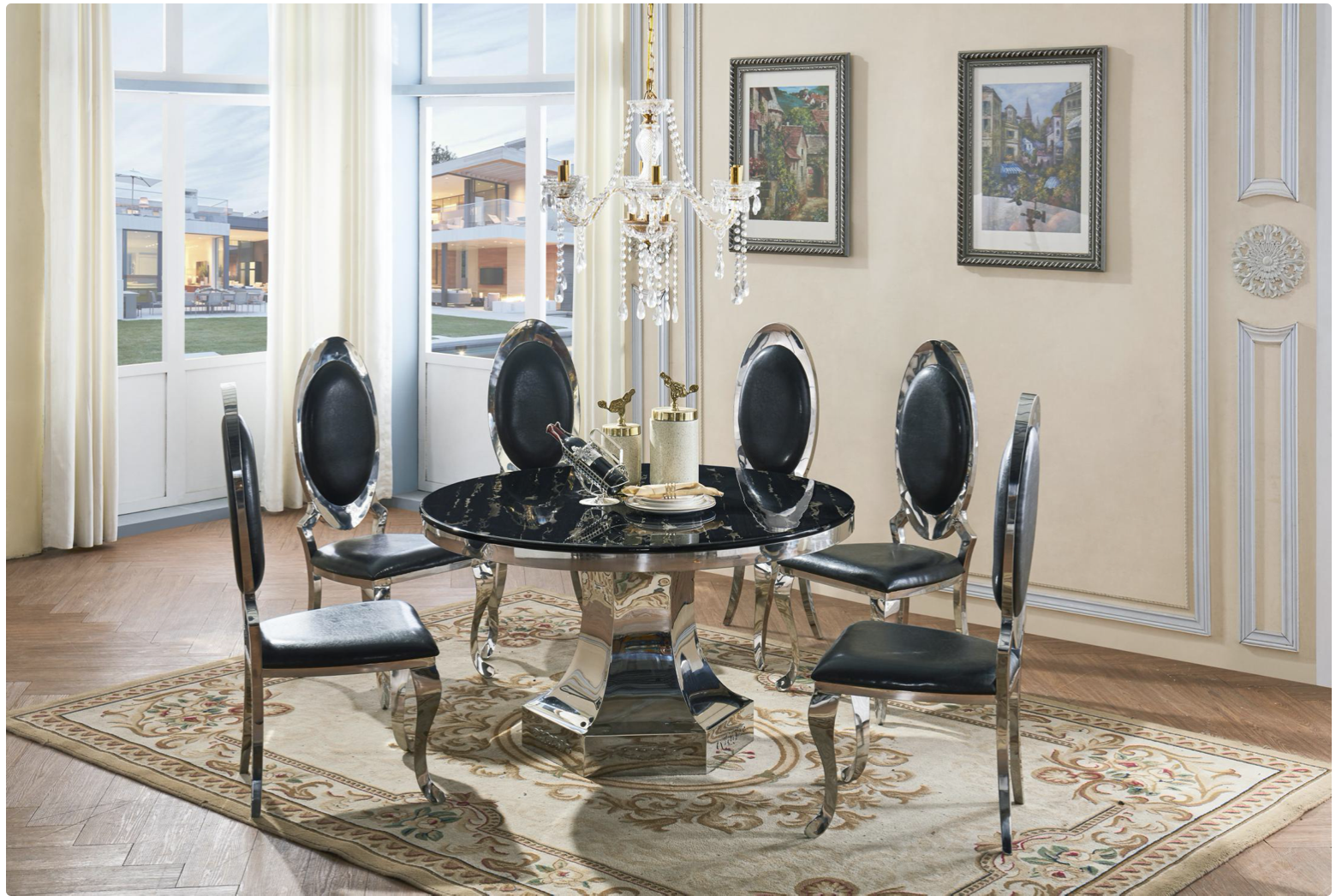 Natural Stone with Marble Effect and Lacquer Finish, Black and Stainless Steel, 1300W Round x 750H,